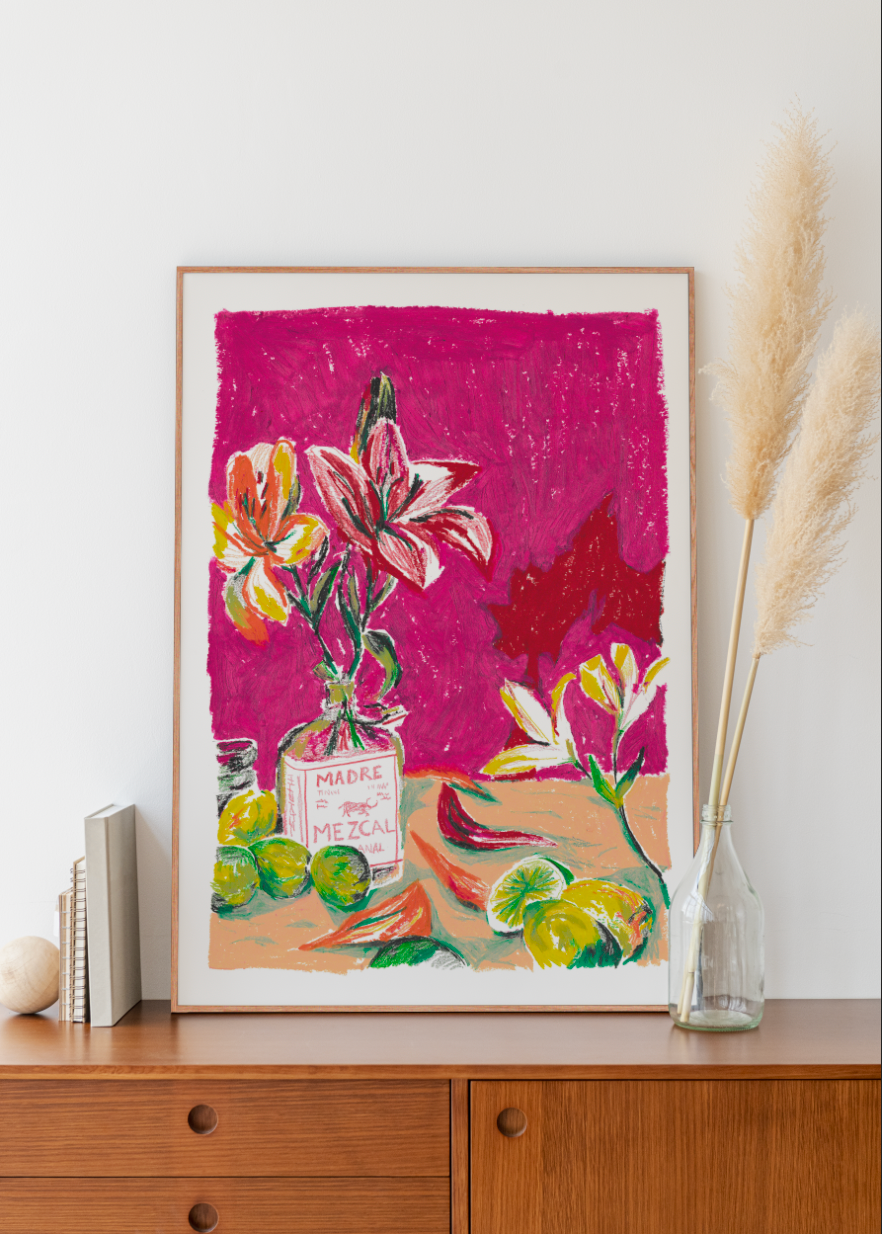 Si vous voulez attirer le soleil, la fête et la joie de vivre dans votre intérieur sans bouger de votre canapé, l'affiche Mezcal est là pour ça !